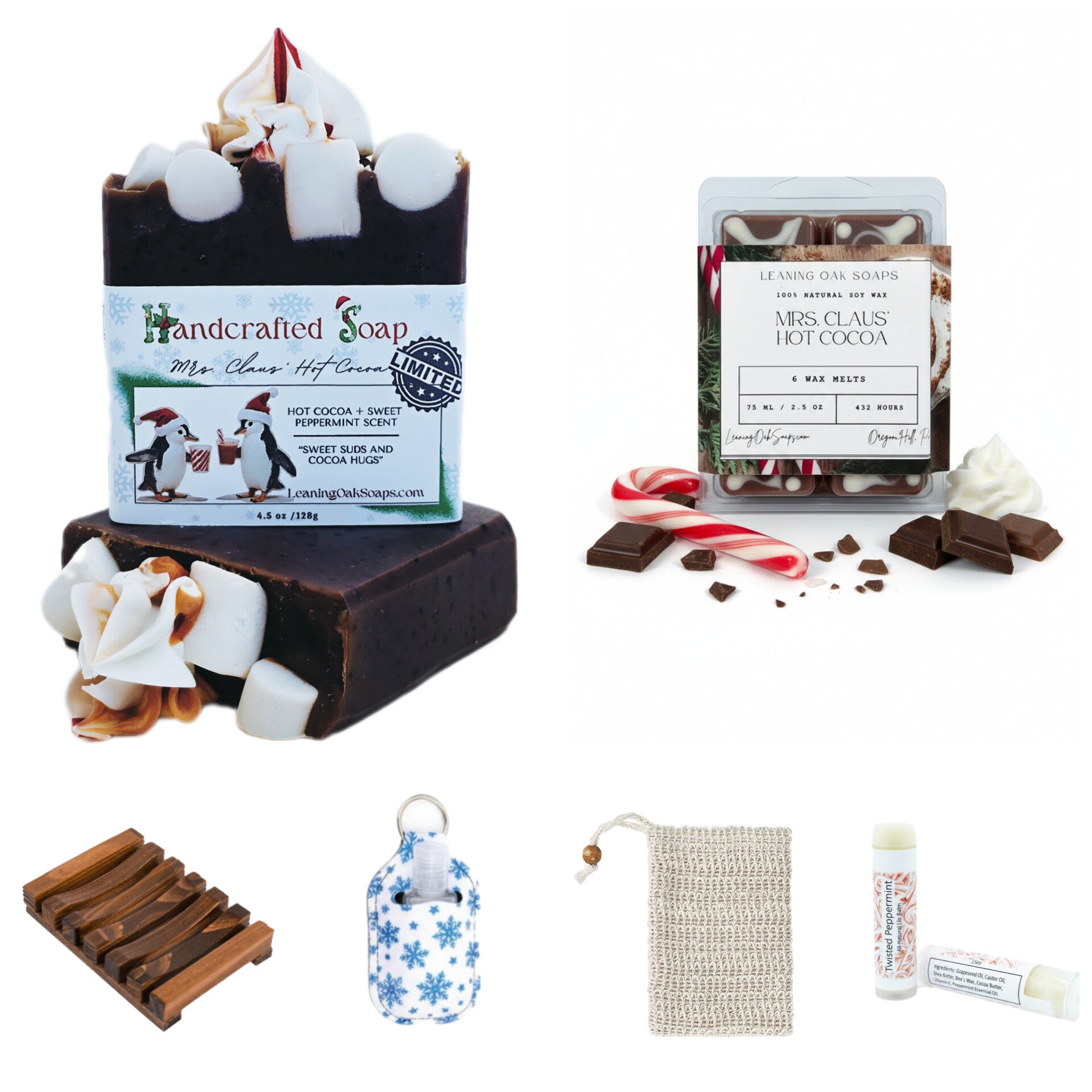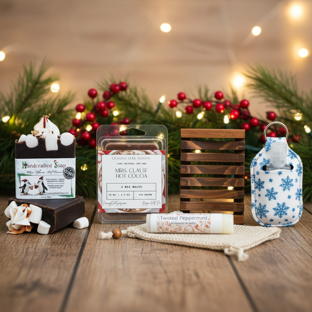 - Mrs. Claus' Hot Cocoa Handcrafted Soap - Luxurious soap made with natural plant-based ingredients that captures the warm, comforting aroma of rich hot chocolate