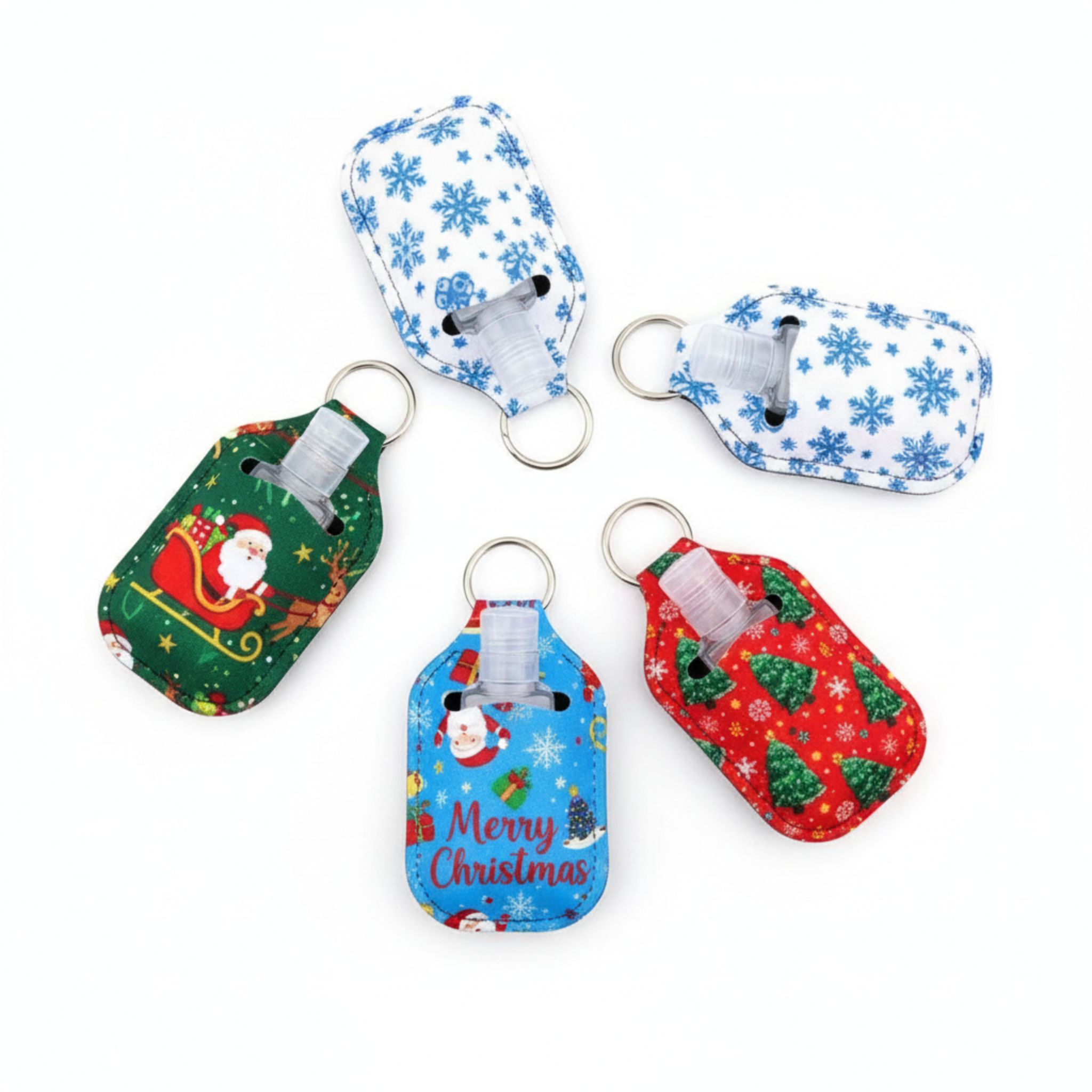 - FREE Festive Hand Sanitizer Bottle with Keychain Carrying Case - Stay clean on-the-go with holiday style