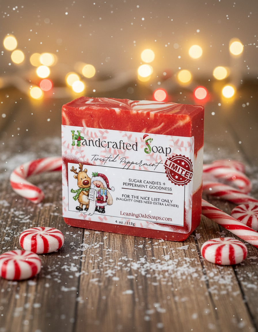 - Twisted Peppermint Handcrafted Soap - Luxurious soap made with natural plant-based ingredients that captures the cool, refreshing aroma of peppermint