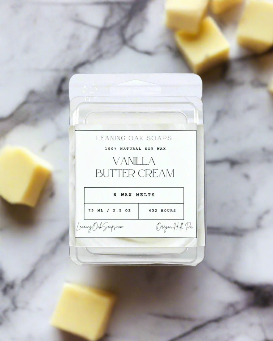 Indulge in the irresistible scent of Vanilla Butter Cream Wax Melt. Experience the warm, comforting aroma of fresh churned butter, combined with the sweetness of sugar and the richness of creamy vanilla bean. Transform your space into a cozy haven with just one melt - perfect for a relaxing evening or a romantic date night. This luxurious wax melt will fill your room with a delicious scent that will soothe your senses and leave you feeling pampered. Elevate your home with the enticing benefits of Vanilla Butter Cream Wax Melt today!